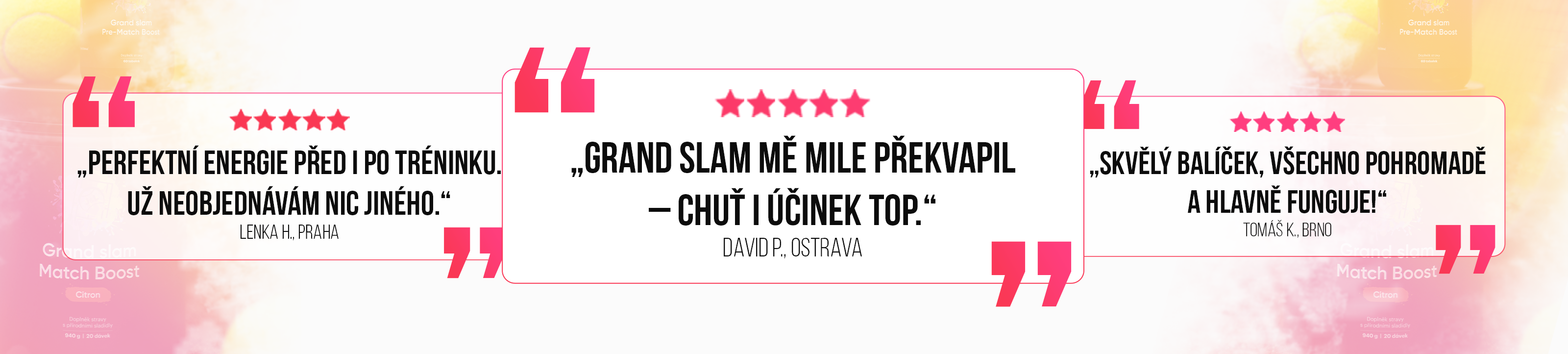 Chceš v kurtu dominovat a hrát beze stop únavy? Naše vlastní doplňky Grand Slam ti pomohou zažít tvůj nejlepší zápas v životě. S energií a soustředěním na maximu zvládneš každou výměnu a udržíš si špičkovou formu až do posledního fiftýnu.