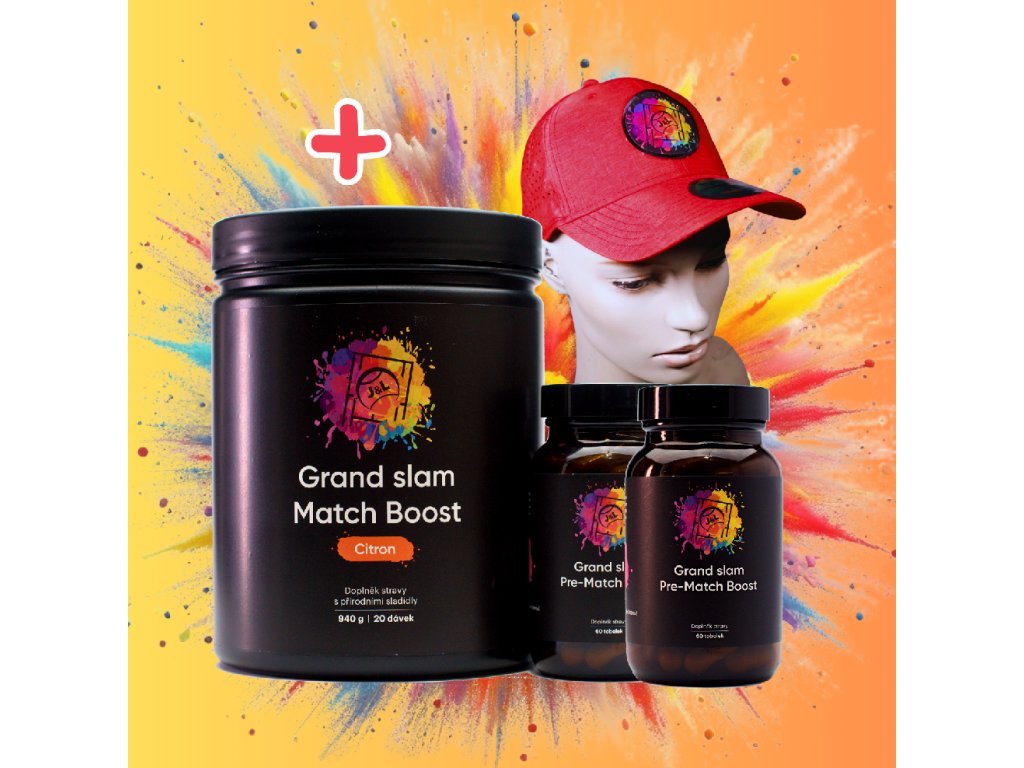 1× Grand Slam Match Boost – špičkový iontový nápoj pro hydrataci, výdrž a soustředění během zápasu.
