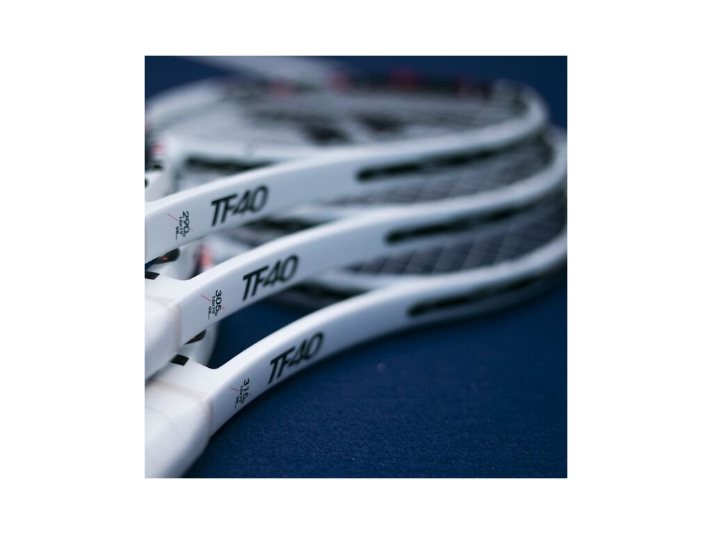 Model TF-40 představuje ideální kombinaci ovladatelnosti a kontroly. Díky hmotnosti 305 g poskytuje potřebnou razanci, zatímco kompaktní hlava o velikosti 630 cm² a hustý výplet 18x20 zaručují vynikající kontrolu a nižší riziko přetržení strun.