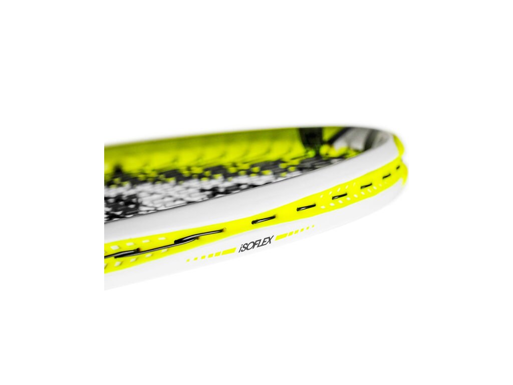 Ergonomii rámu vylepšuje technologie Isoflex, která zvyšuje tuhost po obvodu hlavy rakety a rozšiřuje sweetspot – zajišťuje tak vyšší toleranci při úderech mimo střed a konzistentní výkon napříč celým výpletem. Zaoblený tvar hlavy a zesílené části rámu navíc zvyšují stabilitu a sílu každého úderu.